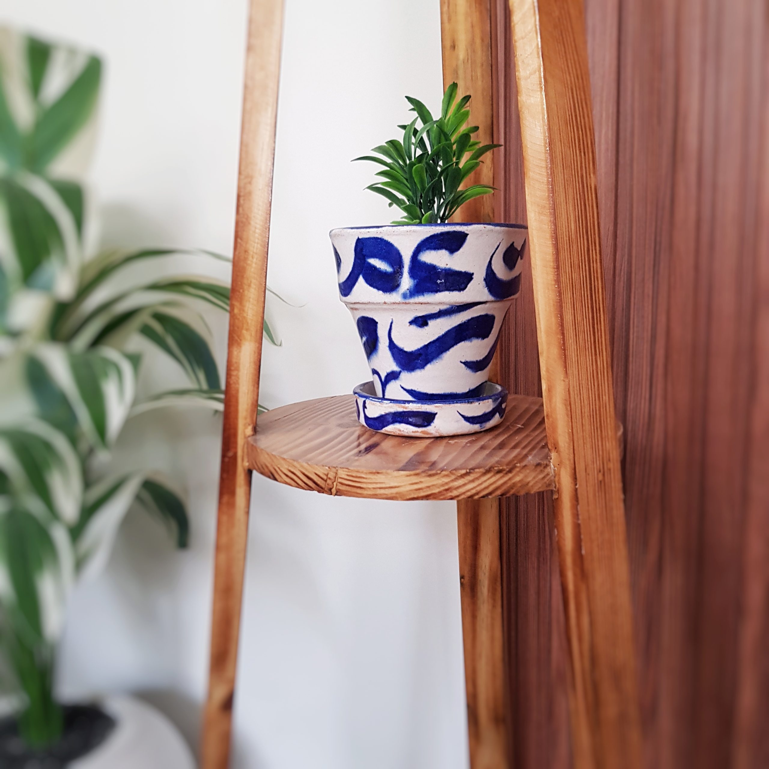 Calligraphy Vibes (Blue and White) – Mini Pot with Plate